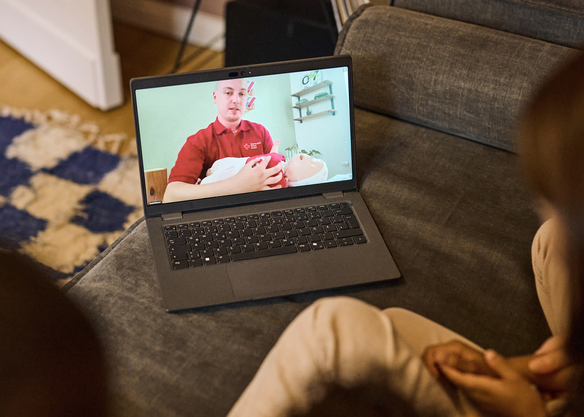 “Der DRK-Elterncampus ist eine digitale Plattform, die virtuelle Live-Kurse für werdende und junge Eltern anbietet. Er vermittelt Wissen zu Themen wie Babyernährung, Erste Hilfe am Kind und Babymassage, ermöglicht aber auch den direkten Austausch mit anderen Eltern und den Kursleiter:innen. Ziel ist es, Familien im ersten Lebensjahr mit ihrem Kind zu unterstützen und ihnen Sicherheit zu geben.”